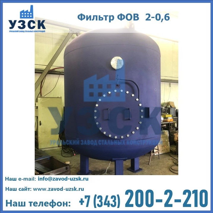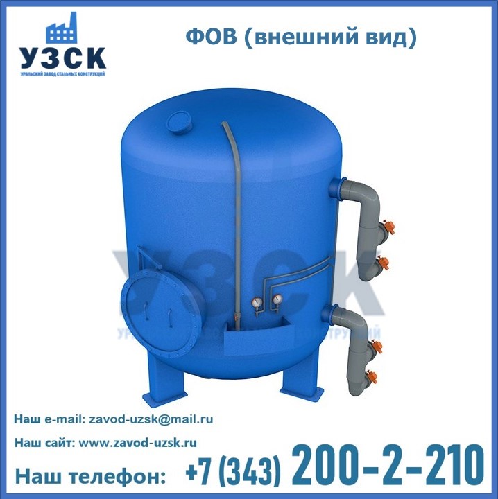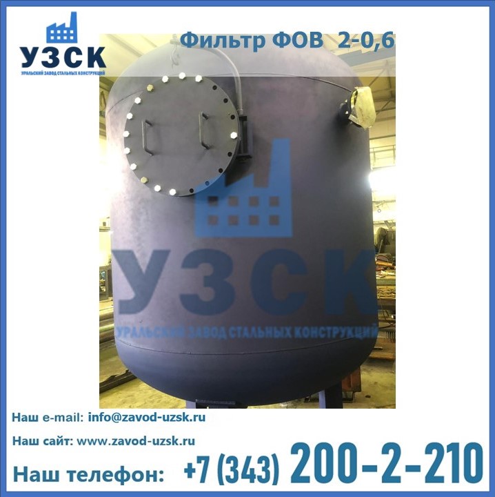 Удаление взвешенных веществ различного уровня дисперсности из рабочих жидкостей эффективно проводит фильтр осветлительный типа ФОВ (скорый или механический) — вертикально-цилиндрической формы установка, разработанная для систем водоподготовки различного класса. Оборудование представляет собой однокамерный агрегат для очистки воды рекомендованный для применения на станциях очистки стоков, в коммунальных котельных, на ТЭЦ, в промышленных отопительных системах и пр. Заказать производство ФОВ фильтров предлагает наш Уральский завод стальных конструкций в Находке. У нас можно купить фильтрационное оборудование различного класса и типа, в том числе фильтры ФОВ из нержавеющей стали.